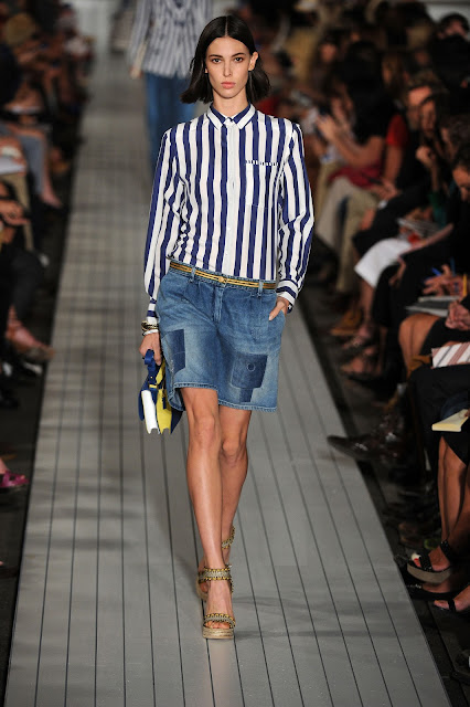 One of the classic shows at New York fashion week is the Hilfiger show. Here it was the all-American Dream. The nautical collection was full of classic sportswear-inspired pieces reworked in unexpected ways. The look is preppy nautical and silhouettes are easy and oversized for a relaxed feel. I especially love the oversize silhouettes and the playful use of stripes.